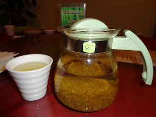 ಒಂದು ಹೂಜಿ  ಚಹಾ ತಂದು, ಊಟದ ಮೇಜಿನ ಮಧ್ಯೆ ಇಡುತ್ತಾರ. ಊಟದ  ಮಧ್ಯೆ, ಆಗಿಂದಾಗ್ಗೆ ಚಹಾವನ್ನು ತಮ್ಮ ಲೋಟಕ್ಕೆ ಬಗ್ಗಿಸಿ ಕುಡಿಯುತ್ತಾರೆ. ಈ ಚಹಾಕ್ಕೆ ಸಕ್ಕರೆ-ಹಾಲು ಸೇರಿಸುವುದಿಲ್ಲ. ಹಾಗಾಗಿ ರುಚಿ ಹೆಚ್ಚು ಕಡಿಮೆ  ಬಿಸಿನೀರಿನಂತೆ ಇದ್ದು, ಸ್ವಲ್ಪ ಬಣ್ಣ ಹಾಗೂ ಪರಿಮಳ ಇರುತ್ತದೆ. ಇಂತಹ ಚಹಾವನ್ನು ಲೀಟರ್ ಗಟ್ಟಲೆ ಕುಡಿದರೂ, ಕ್ಯಾಲೊರಿ -ಕೊಲೆಸ್ಟೆರಾಲ್ ಗಳ  ಭಯ ಬೇಕಿಲ್ಲ. ಮಾರ್ಚ್ ತಿಂಗಳಲ್ಲಿ ಅಲ್ಲಿ 5  ಡಿಗ್ರಿ ತಾಪಮಾನವಿತ್ತು. ಹಾಗಾಗಿ ಬಿಸಿಬಿಸಿ ಚಹಾ ನನಗೂ ಇಷ್ಟವಾಯಿತು.