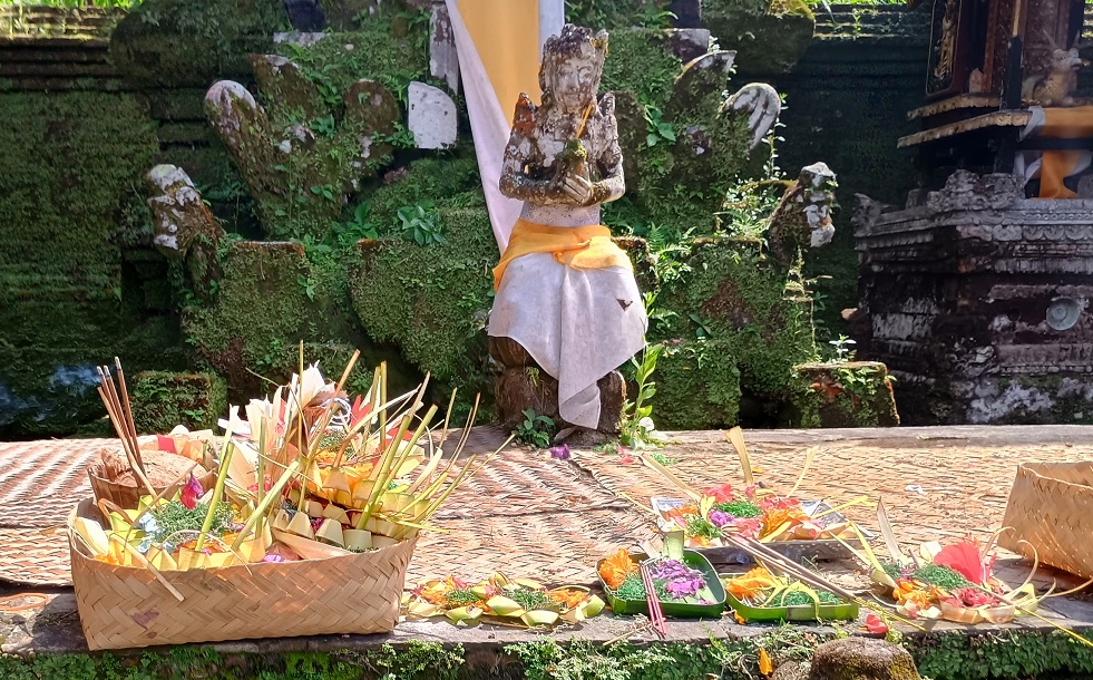 ನಾವು ಗಮನಿಸಿದಂತೆ, ಬಾಲಿಯಲ್ಲಿ ದೇವರಿಗೆ ತೆಂಗಿನ  ಗರಿಯಿಂದ ಮಾಡಿದ ಪುಟ್ಟ ಬುಟ್ಟಿಗಳಲ್ಲಿ ಹೂವು, ಅಗರಬತ್ತಿ ಇಡುತ್ತಾರೆ.  ಸ್ವಲ್ಪ ದೊಡ್ಡದಾದ ಬಿದಿರಿನ  ಬುಟ್ಟಿಗಳಲ್ಲಿ  ಹಣ್ಣುಗಳನ್ನು ಮತ್ತು ಇತರ ಆಹಾರವಸ್ತುಗಳನ್ನು ಅರ್ಪಿಸುತ್ತಾರೆ. ಆದರೆ ಎಲ್ಲಿಯೂ ತಿಂದೆಸೆದ   ಹಣ್ಣಿನ ಸಿಪ್ಪೆ, ಕಾಗದ ದೊನ್ನೆ ,  ಕಿತ್ತು ಹೋದ ಬಿದಿರಿನ ನಾರುಗಳು,  ಒಣಗಿದ  ಹೂವು ಇತ್ಯಾದಿ ಕಾಣಿಸಲಿಲ್ಲ.  ಕೆಲವೆಡೆ ತೀರ್ಥ ಇರುವ ಸ್ಥಳದಲ್ಲಿ ನಾಣ್ಯ ಮತ್ತು ನೋಟುಗಳು ಮಾತ್ರ ಕಂಡು ಬಂದುವು.