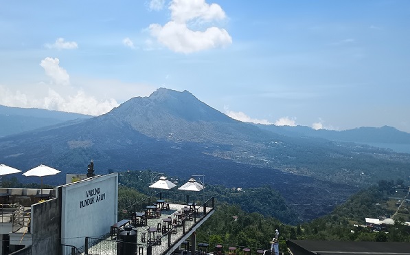 ನಮಗೆ ಕೊಡಲಾದ  ಪ್ರೇಕ್ಷಣೀಯ ಸ್ಥಳಗಳಲ್ಲಿ ‘ಕಿಂತಾಮಣಿ’ ಎಂಬ  ಜ್ವಾಲಾಮುಖಿ ಪರ್ವತದ ಹೆಸರನ್ನು  ಓದಿ ಬಹಳ ಕುತೂಹಲಿಯಾಗಿದ್ದೆ.    ಬಟೂರ್ ನ  ಬೆಸಾಕಿಹ್ ದೇವಾಲಯ ಸಮುಚ್ಛಯದಿಂದ  ಅಂದಾಜು 2 ಕಿಮೀ ದೂರದಲ್ಲಿರುವ   ವೀಕ್ಷಣಾ ಸ್ಥಳಕ್ಕೆ ನಮ್ಮನ್ನು ಕರೆದೊಯ್ದರು. ಅಲ್ಲಿಗೆ ಕಾಣಿಸುವ ‘ಬಟೂರ್ ಪರ್ವತ’ದ ತುದಿಯಲ್ಲಿ ಜ್ವಾಲಾಮುಖಿಯ ಬಾಯಿ ಇದೆಯಂತೆ. ಕರಿಮಣ್ಣು, ಜೇಡಿಮಣ್ಣು ಚೆಲ್ಲಿದ್ದಂತೆ ಕಾಣಿಸುತ್ತಿದ್ದ ಆ ಶಿಖರವು ನಾವಿದ್ದ ಜಾಗದಿಂದ  ನೋಡುವಾಗ  ವಿಶೇಷ ಪರ್ವತವಾಗಿ ಕಾಣಿಸಲಿಲ್ಲ. ಸುಮಾರು 3-4 ಗಂಟೆ ಚಾರಣ ಮಾಡಿದರೆ   ಬಟೂರ್  ಪರ್ವತದ ಶಿಖರಕ್ಕೆ ತಲಪಲು ಸಾಧ್ಯವಿದೆಯಂತೆ.  1963 ರಲ್ಲಿ  ಈ ಜ್ವಾಲಾಮುಖಿಯು  ಸಿಡಿದು ಹೊರಹೊಮ್ಮಿದ ಲಾವಾ ಮತ್ತು ಬೆಂಕಿಜ್ವಾಲೆಯಿಂದ  1000 ಕ್ಕೂ ಹೆಚ್ಚು ಸಾವುನೋವುಗಳು ಸಂಭವಿಸಿದುವಂತೆ.  ವೀಕ್ಷಣಾ ಸ್ಥಳದ  ಪಕ್ಕದಲ್ಲಿ ಸ್ಥಳೀಯರು  ಮಣಿಸರ, ಟಿ ಶರ್ಟ್,  ಕಿತ್ತಳೆ ಇತ್ಯಾದಿ ಮಾರುತ್ತಿದ್ದರು. ನಮ್ಮನ್ನು ನೋಡಿದ ತಕ್ಷಣ ‘ಇಂಡಿಯಾ..ರೂಪೀಸ್’ ಎಂದು ಭಾರತೀಯ ಕರೆನ್ಸಿಯನ್ನೂ ಸ್ವೀಕರಿಸುತ್ತೇವೆಂದು ದುಂಬಾಲು ಬೀಳುತ್ತಿದ್ದರು. ನಾವು ಕೆಲವರು  ಸಣ್ಣ-ಪುಟ್ಟ ವ್ಯಾಪಾರ ಮಾಡಿದೆವು.