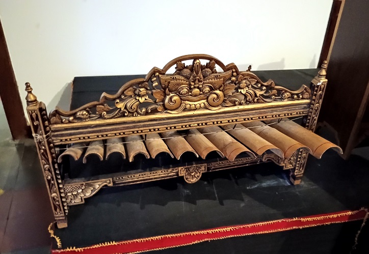 ಇದ್ದಕಿದ್ದಂತೆ  ಸುಶ್ರಾವ್ಯವಾದ ನಾದ ತೇಲಿ ಬಂತು.  ಗಮನಿಸಿದಾಗ ನಮ್ಮ ಮಾರ್ಗದರ್ಶಿ  ಮುದ್ದಣನು  ಸಂಗೀತೋಪಕರಣವೊಂದನ್ನು ನುಡಿಸುತ್ತಿದ್ದುದು ಕಾಣಿಸಿತು. ವಿಚಾರಿಸಿದಾಗ ಅದು ‘ಸರೊನ್ ‘  ಎಂಬ  ದೇಶೀ  ಆರ್ಕೆಸ್ಟ್ರಾಗಳಲ್ಲಿ ಬಳಸುವ ವಾದ್ಯ ಎಂದು ಗೊತ್ತಾಯಿತು.  ಲೋಹ ಮತ್ತು  ಅರ್ಧವಾಗಿ ಸೀಳಿದ 8-10 ಬಿದಿರಿನ ತುಂಡುಗಳನ್ನು ಜೋಡಿಸಿದ್ದ ಉಪಕರಣವದು.  ಎರಡು ಬಿದಿರಿನ ಕಡ್ಡಿಗಳನ್ನು  ಅರ್ಧ ಸೀಳಿದ ಬಿದಿರಿನ  ಜೋಡಣೆ ಮೇಲೆ  ಲಯಬದ್ಧವಾಗಿ ಬಡಿಯುವಾಗ ಇಂಪಾದ ಸಂಗೀತ ಕೇಳುತ್ತಿತ್ತು.   ಭಾರತದ  ಶ್ರೀಕೃಷ್ಣನ ಕೊಳಲು ರೂಪದಲ್ಲಿ ಕಂಗೊಳಿಸಿದ ಎಳೆ ಬಿದಿರು, ಇಂಡೋನೇಶ್ಯಾದಲ್ಲಿ ದೊಡ್ಡ ಪಿಯಾನೋದ ಗಾತ್ರದಲ್ಲಿ ಲಯವಾದ್ಯವಾಗಿ ರೂಪುಗೊಂಡಿರುವ ರೀತಿ ಸೋಜಿಗವೆನಿಸಿತು.